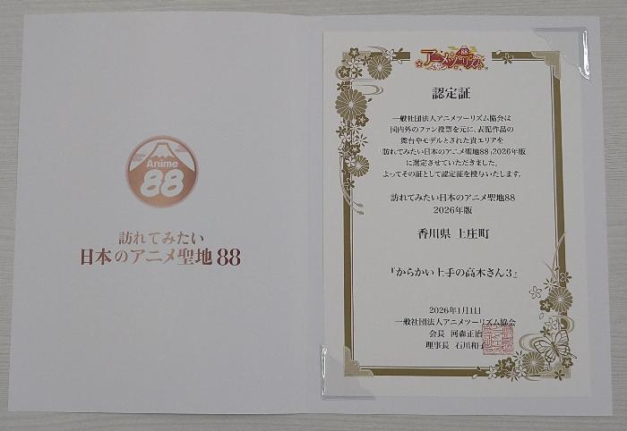 一般社団法人 アニメツーリズム協会 が発表した2026年版「訪れてみたい日本のアニメ聖地88」において、土庄町が『からかい上手の高木さん』の舞台として認定されました。
