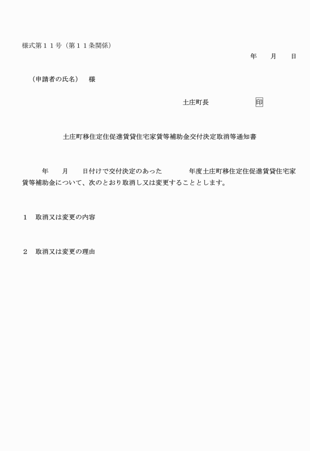 第10条 翌年度以降も引き続き賃貸住宅家賃補助の交付を受けようとする者は、毎年6月30日までに土庄町移住定住促進賃貸住宅家賃等補助金交付申請書【更新】(様式第3号)に関係書類を添えて町長に提出しなければならない。